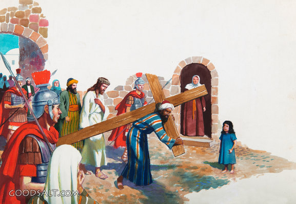 Simon From Cyrene Carries Jesus' Cross Luke 23:26 Matthew 27:27-32 calvary, heavy, carrying, bent, christ, Jesus, leading, over, crown, street, crowd, simon, cross, of, easter, passion, crucifixion, the, thorns, is, to, soldiers, carries, Cyrene, the bible story, manning de v. lee, simon of cyrene, simon carries the cross, rhpas0808 PROJECTION - License for PowerPoint™ PRINT – buy a print of this picture; optional frame Bible Hub |