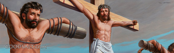 The Three Crosses of Jesus and the Two Thieves Luke 23:41-43 two, christ, Jesus, crown, thieves, cross, thief, of, easter, passion, on, the, thorns, crosses, at, Looks, thief on the cross, the bible story, russ harlan, rhpas0809 PROJECTION - License for PowerPoint™ PRINT – buy a print of this picture; optional frame Bible Hub |