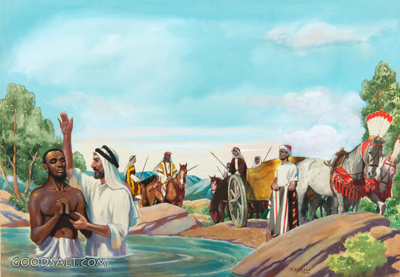 Philip and the Ethiopian on the Road to Gaza Acts 8:37-39 Acts 8:26-40 baptism, pool, teaching, baptizing, prayer, men, ethiopian, ministry, jerusalem, philip, road, from, chariot, horses, hands, to, Scriptures, Gaza, in, guards, Baptizes, the bible story, manning de v. lee, rhpas0838 PROJECTION - License for PowerPoint™ PRINT – buy a print of this picture; optional frame Bible Hub |