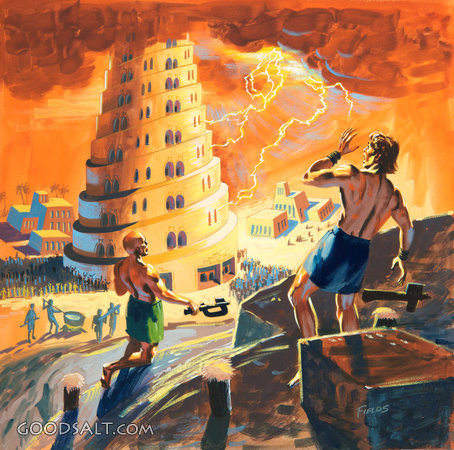 The End of the Tower of Babel Genesis 11:7-9 people, built, raised, tower, confused, higher, confusion, coming, lightning, building, of, from, frustration, scattered, scattering, genesis, arms, crowds, Babel, tower of Babel, Don Fields, languages, rhpas0922 PROJECTION - License for PowerPoint™ PRINT – buy a print of this picture; optional frame Bible Hub |