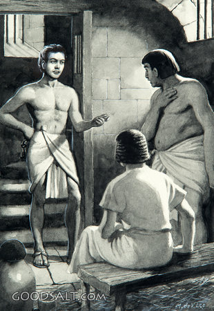 Prison Dreams of Joseph Genesis 40:1-3 bench, picture, black, talking, towel, white, joseph, cook, dream, jail, prison, bar, servant, stairs, windows, steps, dreams, personal, Talks, manning de v. lee, classical style, emotional, rhpas0943 PROJECTION - License for PowerPoint™ PRINT – buy a print of this picture; optional frame Bible Hub |