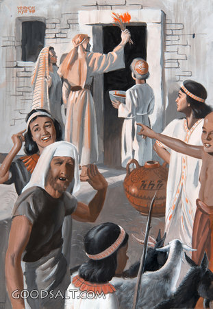 Laughing at the Blood on the Door Posts Exodus 12:21-28 pointing, doorway, people, painting, preparing, marking, blood, ridicule, door, egypt, preparation, jeering, group, laughing, family, doorpost, Jews, egyptians, rhpas0961, paints PROJECTION - License for PowerPoint™ PRINT – buy a print of this picture; optional frame Bible Hub |