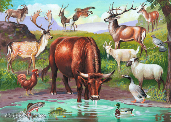 Clean Animals Safe to Eat Leviticus 11 pond, deer, cow, chicken, goat, salmon, duck, goose, sheep, clean, unclean, fish, trout, meadow, animals, creatures, rhpas0980 PROJECTION - License for PowerPoint™ PRINT – buy a print of this picture; optional frame Bible Hub |