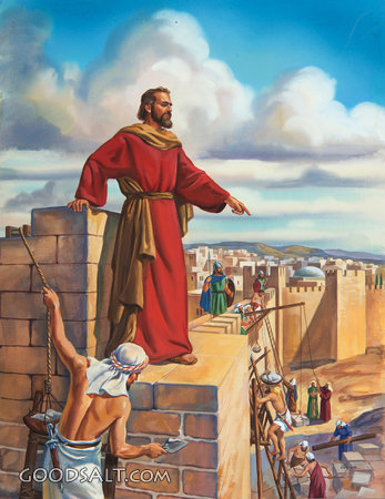 Rebuilding the Wall Nehemiah 1:1-3 jerusalem, nehemiah, walls, robert ayres, old testament, the old swimming hole, dog paddling, cooling off, girl in yellow, depression era, 045_01_0106_vnt1, birthplace PROJECTION - License for PowerPoint™ PRINT – buy a print of this picture; optional frame Bible Hub |