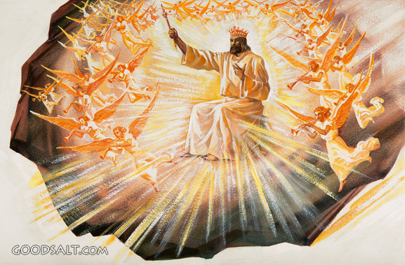 The Second Coming Revelation 14:14-16 celebrate, christ, Jesus, stone, rock, crown, scroll, coming, second, majesty, throne, angels, trumpets, retro, herald, beams, jesus christ, second coming, rhpas0086, trumpeting, day of his appearing, rhpas1057, heralding, angel host PROJECTION - License for PowerPoint™ PRINT – buy a print of this picture; optional frame Bible Hub |