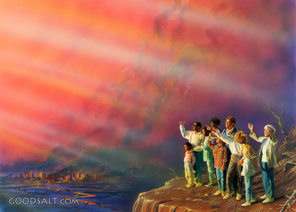 Going Home 1 Thessalonians 4:16-17 Revelation 1:7-7 Matthew 16:27-27 city, happiness, people, celebration, joy, salvation, coming, glory, home, light, group, family, burning, clouds, second coming, peoples, rhpas1189, arms spread, going home, sheilding eyes PROJECTION - License for PowerPoint™ PRINT – buy a print of this picture; optional frame Bible Hub |