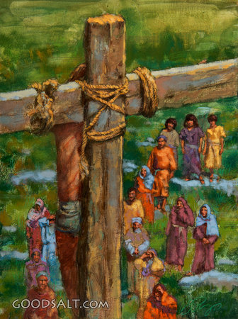 Calvary Matthew 27:33-46 Mark 15:22-37 Luke 23:33-47 John 12:32 John 19:17-37 calvary, cross, easter, passion, crucifixion, witnesses, jack pardue, jesus on the cross, restrained, pulled PROJECTION - License for PowerPoint™ PRINT – buy a print of this picture; optional frame Bible Hub |