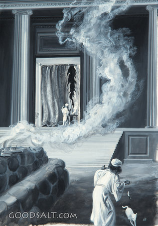 Temple Curtain Torn Matthew 27:51 torn, smoke, priest, temple, altar, courtyard, rent, sacrifice, curtain, easter, passion, black and white, most holy place, steps PROJECTION - License for PowerPoint™ PRINT – buy a print of this picture; optional frame Bible Hub |