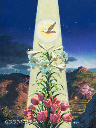 lily, comforter, dove, promise, easter, crucifixion, holy spirit, charles zingaro, tulips, Lillies, 242, bsnt242promise001ccz