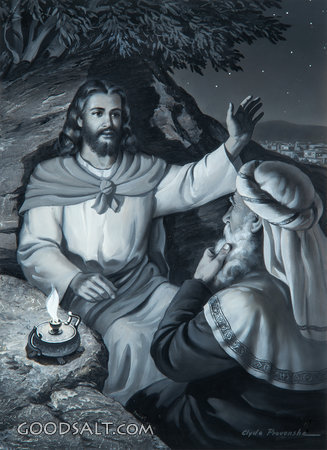 With Nicodemus John 3:1-21 lamp, christ, Jesus, talking, discussing, night, nicodemus, black and white, clyde provonsha, jesus and nicodemus, childrens style art, ire PROJECTION - License for PowerPoint™ PRINT – buy a print of this picture; optional frame Bible Hub |
