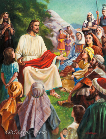 Jesus, teaching, listening, hillside, instructing, multitude, sermon, seated, mount, sermon on the mount, harry baerg