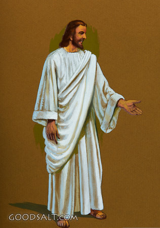 standing, christ, Jesus, hand, gesture, open, smile, smiling, love, son of god, recieve, hpas1593b