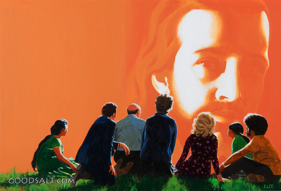portrait, orange, christ, Jesus, crouching, looking, grass, style, crouch, lawn, afro, sitting, graphic, i am he, rhpas1605