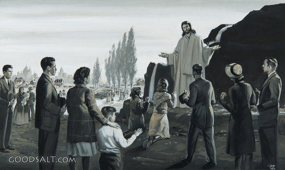 Come to Me Matthew 11:28 people, water, appear, appeal, fountain, crowd, appearing, family, black and white, grotto, 1950s, 1940s, rhpas1608, come to me PROJECTION - License for PowerPoint™ PRINT – buy a print of this picture; optional frame Bible Hub |