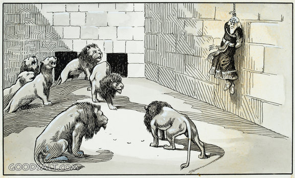 lower, lion, daniel, den, rope, black and white, black & white, lowered, rhpas2820
