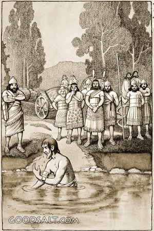 Naaman Washing in the Jordan River 2 Kings 5:14-14 wash, jordan, river, clean, elisha, healed, naaman, washing, black and white, black & white, rhpas2874 PROJECTION - License for PowerPoint™ PRINT – buy a print of this picture; optional frame Bible Hub |