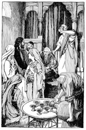 The Chief Steward Tastes the Wine John 2:8-10 water, christ, Jesus, wine, chief, taste, steward, black and white, water to wine, black & white, miracle at cana, rhpas2889 PROJECTION - License for PowerPoint™ PRINT – buy a print of this picture; optional frame Bible Hub |