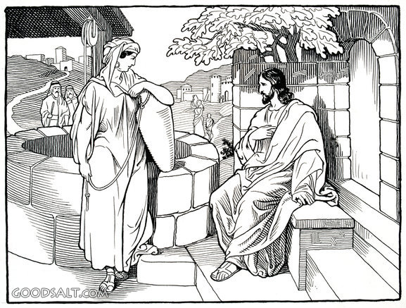 The Woman at the Well John 4:13-14 water, Jesus, woman, life, eternal, well, black and white, living water, black & white, life giving water, rhpas2891, gscoloringpage PROJECTION - License for PowerPoint™ PRINT – buy a print of this picture; optional frame Bible Hub |