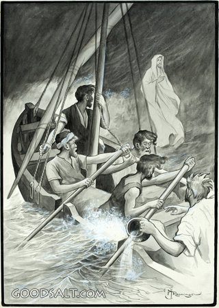 Walking on Storming Waters Matthew 14:25-26 water, Jesus, sea, spirit, storm, boat, waves, disciples, black and white, walk on water, walking on water, black & white, rhpas2899 PROJECTION - License for PowerPoint™ PRINT – buy a print of this picture; optional frame Bible Hub |