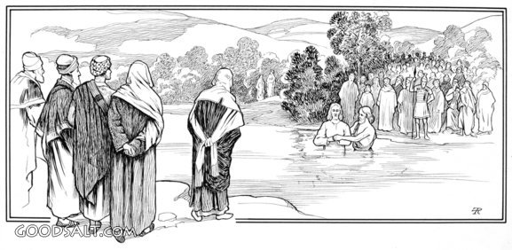 John the Baptist Baptizing Matthew 3:5-6 baptize, baptism, preach, baptist, john, crowd, pharisees, teachers, black and white, black & white, rhpas2904 PROJECTION - License for PowerPoint™ PRINT – buy a print of this picture; optional frame Bible Hub |