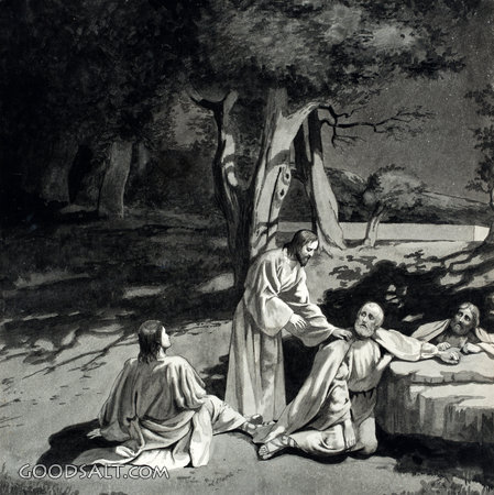 Jesus Wakes the Sleeping Disciples Matthew 26:38-43 Jesus, pray, prayer, sleep, wake, disciples, black and white, garden of gethsemane, black & white, rhpas2919 PROJECTION - License for PowerPoint™ PRINT – buy a print of this picture; optional frame Bible Hub |