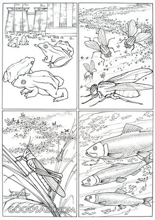 blood, egypt, moses, nile, Plagues, frogs, flies, locusts, rhpas2968, gscoloringpage