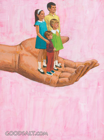standing, care, hand, palm, protection, open, group, children, siblings, loving care, vintage, rhpas3176