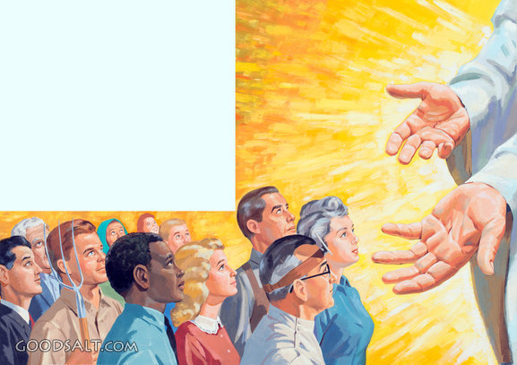 god, christ, Jesus, ethnic, crowd, inviting, doctor, hands, vintage