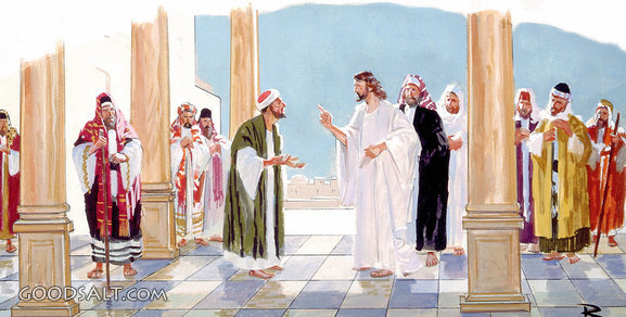 Jesus, heal, talk, man, temple, crowd