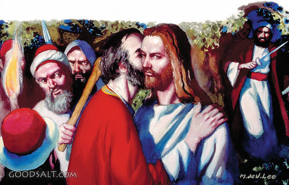 Jesus, kiss, betrayal, peter, gethsemane, garden, word, capture, judad