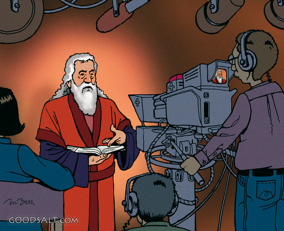 Exodus 35:4 Exodus 35:4 1 Samuel 7:3 Nehemiah 8:3 people, modern, god, Jesus, day, catholic, explaining, bible, book, man, elderly, men, old, camera, recording, male, tv, television PROJECTION - License for PowerPoint™ PRINT – buy a print of this picture; optional frame Bible Hub |
