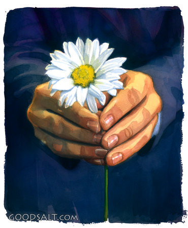 flower, daisy, give, handing, petal, gift, hand, one, plant, finger