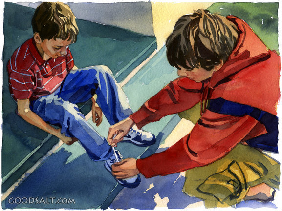 Romans 15:1 Romans 15:1 people, help, relationship, helping, kneel, kneeling, teach, teaching, learn, learning, tie, teenager, boy, brother, kid, youth, shoe, friend, family, friendship, sitting, sit, shoelace, children PROJECTION - License for PowerPoint™ PRINT – buy a print of this picture; optional frame Bible Hub |