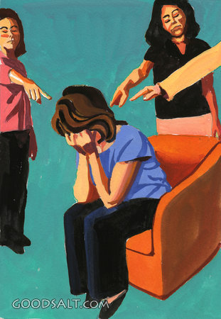 point, punishment, punish, accuse, woman, women, cry, guilt, weep, friend, sit, chair