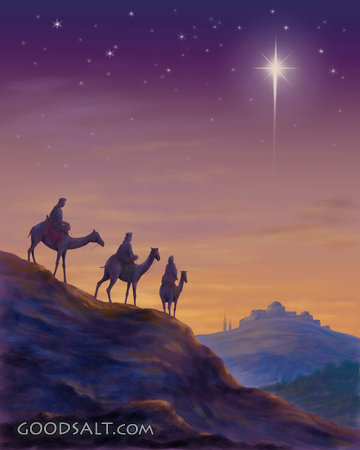 nativity, sunset, star, bethlehem, christmas, camels, wise men