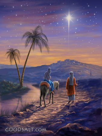 nativity, star, stream, christmas, donkey, palm tree, sunstet
