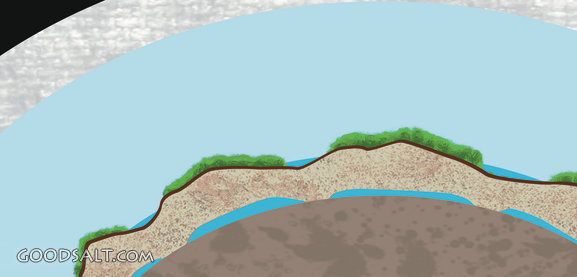Pre-Flood Earth Diagram Close Up Genesis 1:6-10 Genesis 2:4-6 Job 38:4-11 Psalm 33:7 Proverbs 8:24-29 Revelation 14:7 Psalm 65:9-13 diagram, atmosphere, earth, mantle, geography, pre-flood, slice, pre-flood earth, slice of the earth, waters of the deep, waters from waters, topography PROJECTION - License for PowerPoint™ PRINT – buy a print of this picture; optional frame Bible Hub |
