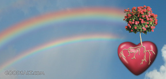 Heart and Rainbow Ezekiel 18:31-32 Ezekiel 36:25-28 Galatians 5:22-23 2 Corinthians 5:17 Colossians 3:12-15 Isaiah 60:1 Philippians 2:15 Matthew 5:16 encouraging, soft, rainbow, gentle, red heart, fruits of the spirit, new heart, heart producing roses, red rose bush growing out of red heart, soft background with new heart, god's love growing in new heart, blue sky with clouds and rainbow PROJECTION - License for PowerPoint™ PRINT – buy a print of this picture; optional frame Bible Hub |
