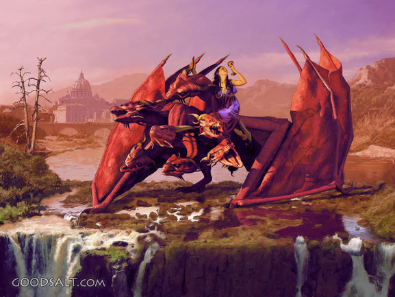 WhoreBeast Revelation 17 Revelation 17:3 water, woman, dragon, jewelry, revelation, purple, prophecy, seven, beast, gold, red, prostitute, cup, adulteress, scarlet, filth, heads, seven-headed, headed, whore, abominations, adulteries, prophecyart PROJECTION - License for PowerPoint™ PRINT – buy a print of this picture; optional frame Bible Hub |