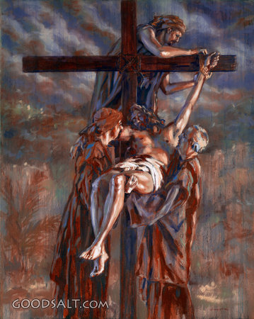 Removal From the Cross Matthew 27:57-61 Mark 15:42-47 Luke 23:50-54 John 19:38-42 messiah, calvary, golgotha, dead, Jesus, death, cross, sacrifice, easter, friday, crucifixion, disciples PROJECTION - License for PowerPoint™ PRINT – buy a print of this picture; optional frame Bible Hub |