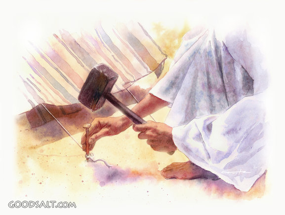 God's Tent Exodus 25:8 2 Corinthians 6:16 Revelation 21:3 Exodus 29:45-46 Leviticus 26:11 1 Kings 6:13 people, desert, pitch, tent, god, Jesus, hammer, companionship, stake, tabernacle, white robe, midst, prophecyart PROJECTION - License for PowerPoint™ PRINT – buy a print of this picture; optional frame Bible Hub |