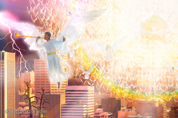 The Trumpet of God 1 Thessalonians 4:16 Matthew 25:31 Matthew 16:27-28 Matthew 24:31 city, angel, christ, Jesus, blow, trumpet, return, second coming, steve, creitz PROJECTION - License for PowerPoint™ PRINT – buy a print of this picture; optional frame Bible Hub |