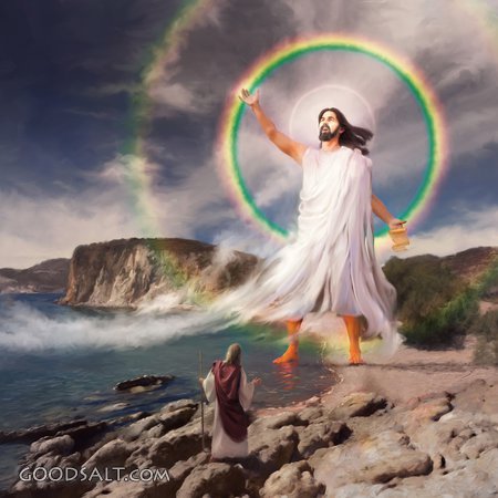 Angel With Little Scroll (Michael Edition) Revelation 10:1-3 Revelation 10 angel, christ, rainbow, sea, john, scroll, archangel, little, stand, Michael PROJECTION - License for PowerPoint™ PRINT – buy a print of this picture; optional frame Bible Hub |