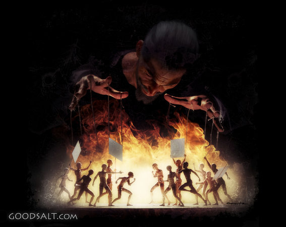 The Puppet Master John 8:44 Matthew 13:25 Matthew 13:25-28 Matthew 13:39 1 Peter 5:8 fight, behind, violence, above, devil, lucifer, satan, control, hate, chaos, puppet, hands, conflict, protest, extremeism, puppeteer PROJECTION - License for PowerPoint™ PRINT – buy a print of this picture; optional frame Bible Hub |