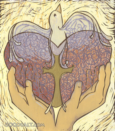 heart, dove, spirit, cross, passion, god's love, into your hands