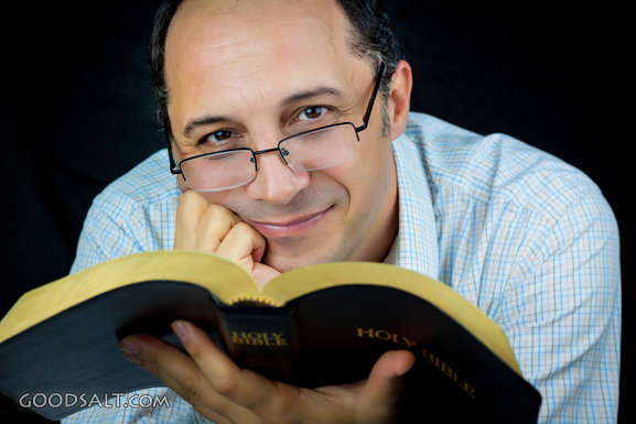 happy, study, bible, man, smiling, scripture, hold, bald, holy bible, glasses, dark background
