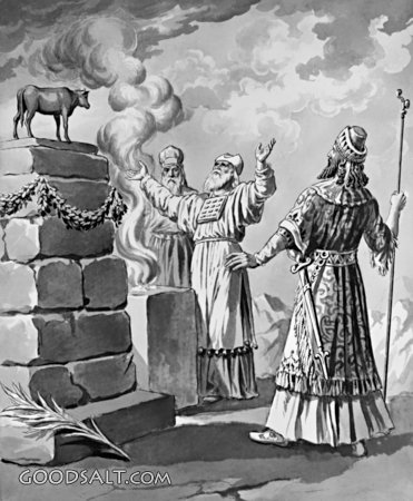 Jeroboam Leads Israel Into Sin 1 Kings 12:25-33 history, king, bethel, gold, golden, israel, calf, dan, Jeroboam, Shechem, calves Picture courtesy of GoodSalt.com