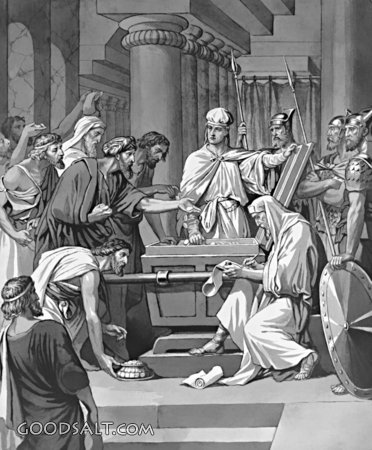 Joash Repairs the Temple 2 Kings 12:1-16 2 Chronicles 24:1-14 history, temple, money, king, jehoiada, joash, prophecy, sin, discipleship, tax, love, commandments, priests, Levites, repair, Jehoash PROJECTION - License for PowerPoint™ PRINT – buy a print of this picture; optional frame Bible Hub |