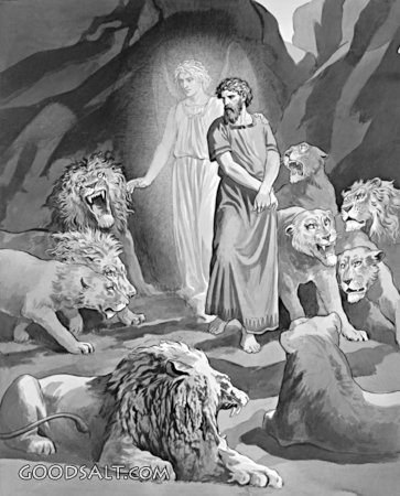 Daniel in the Lion's Den Daniel 6 angel, witnessing, god, history, law, prayer, deliverance, faith, daniel, den, darius, sin, discipleship, love, lions, Medes, Persians PROJECTION - License for PowerPoint™ PRINT – buy a print of this picture; optional frame Bible Hub |