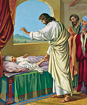 Jesus Heals Peter's Mother-in-Law Matthew 8:14-17 Mark 1:29-34 Luke 4:38-41 suffering, Jesus, healing, sickness, illness, minister, peter, faith, simon, prophecy, mother-in-law, fever PROJECTION - License for PowerPoint™ PRINT – buy a print of this picture; optional frame Bible Hub |